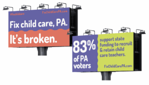 We created campaign visuals to build a movement of Pennsylvanians who care about early learning access, with a goal of driving political candidates toward the issue. Our designs inspire action, helping families see themselves as part of a collective voice advocating for affordable, high-quality child care, and our work has helped solidify child care voters as a demographic worth listening to.